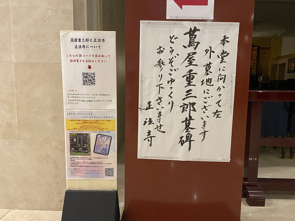 べらぼう展を観終わって、吉原に向かう途中で蔦屋重三郎のお墓がある正法寺(しょうほうじ)に寄ってみました。