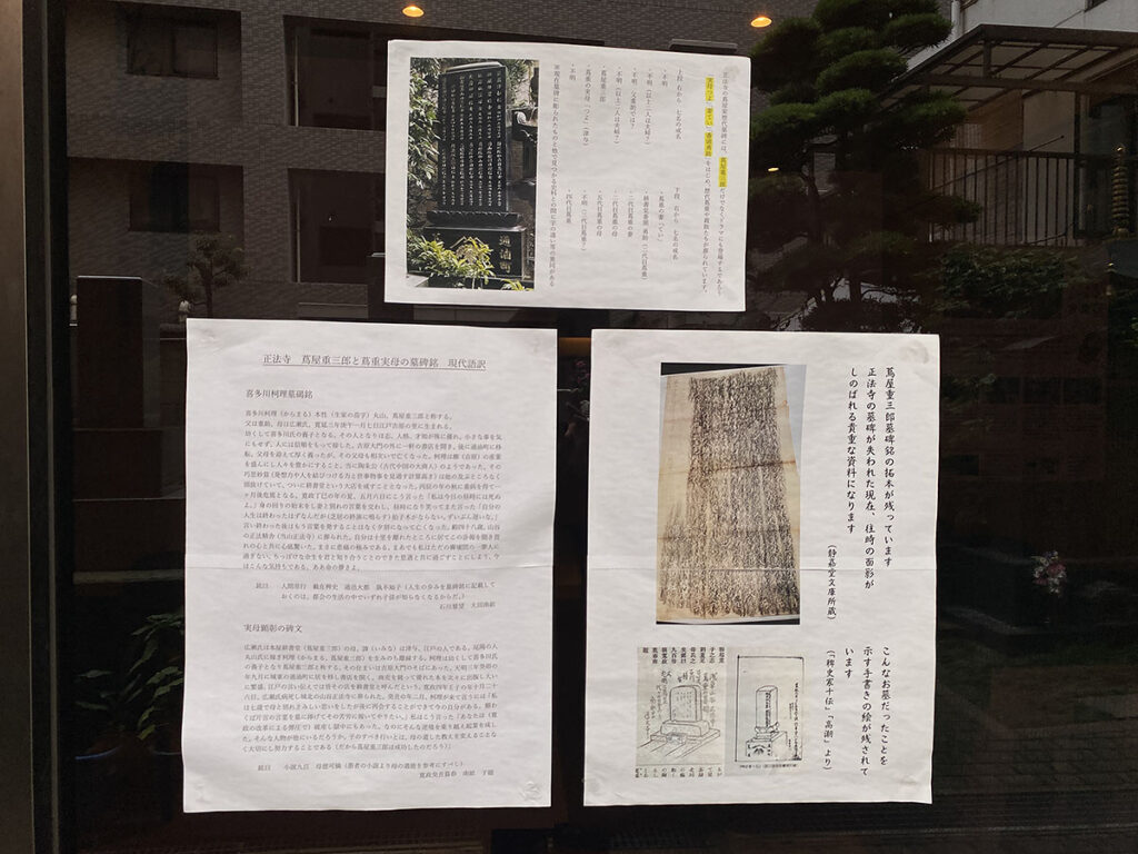 また、お寺の方がお手製でお寺に伝わる話や、江戸時代に建てられたお墓の拓本の写真などを説明用に貼ってくれています。