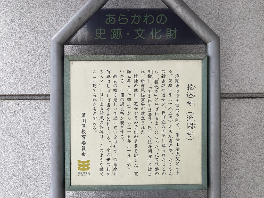 この辺はもう台東区ではなく荒川区になるのですね。浄閑寺は「生まれては苦界、死しては浄閑寺」という川柳が詠まれるほど有名なお寺でした。