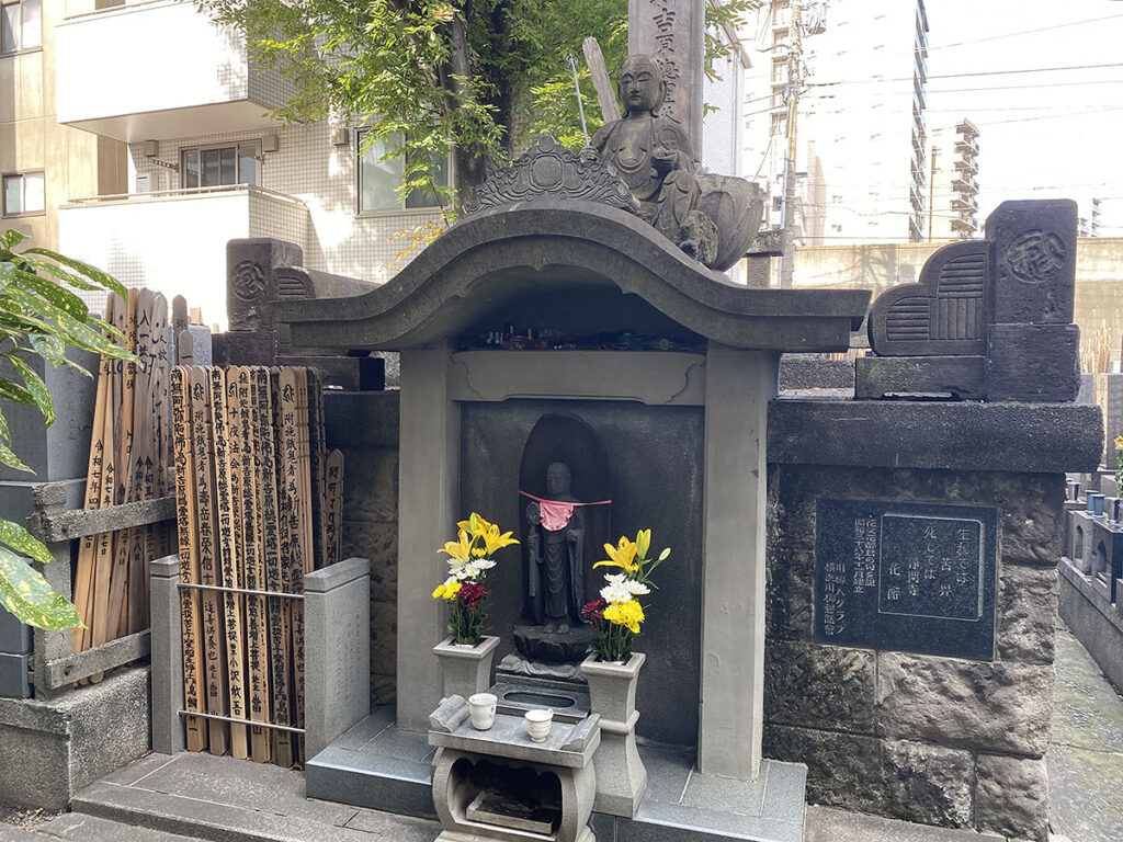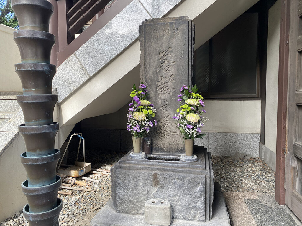 入ってすぐ右手に有名な花魁・若紫のお墓がありました。綺麗な花が活けてあります、いまだに墓参りに来る人が多いのでしょう。