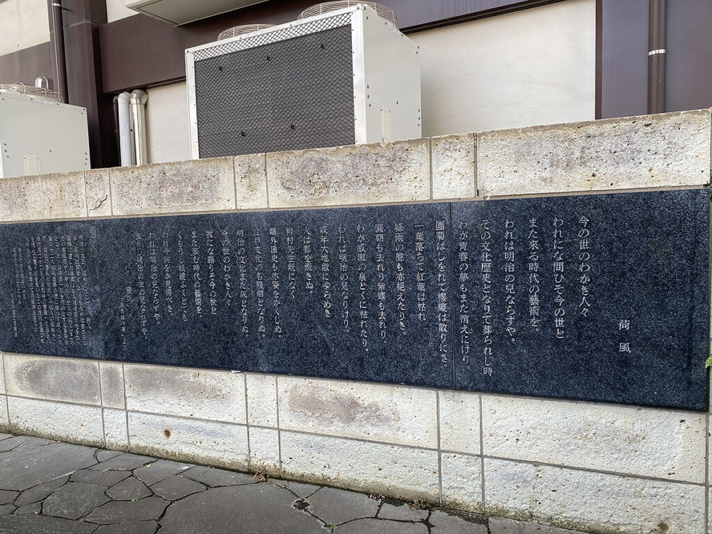新吉原総霊塔と向かい合う形で永井荷風の筆塚と文学碑があります。没後は浄閑寺に葬って欲しい願っていたそうですが、それが叶わなかったのでせめて小筆と歯だけを浄閑寺に納めたそうです。