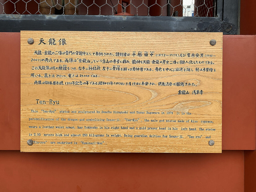 門の裏面の間には、「金龍・天龍」の像が安置されています。寺号である金龍山にちなんだものですね。