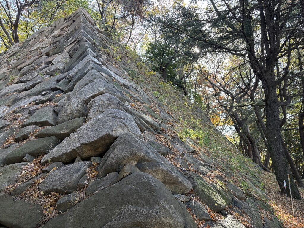 これらはすべて文禄・慶長の役の際に日本軍が築いた 子城台倭城 の名残です。釜山鎮城の丸石の石垣と比べてみると、文化と技術の違いが一目で分かります。一つの丘の中で、朝鮮と日本、二つの石垣が並存している。その“重なり”こそが、この城跡の最大の魅力でした。