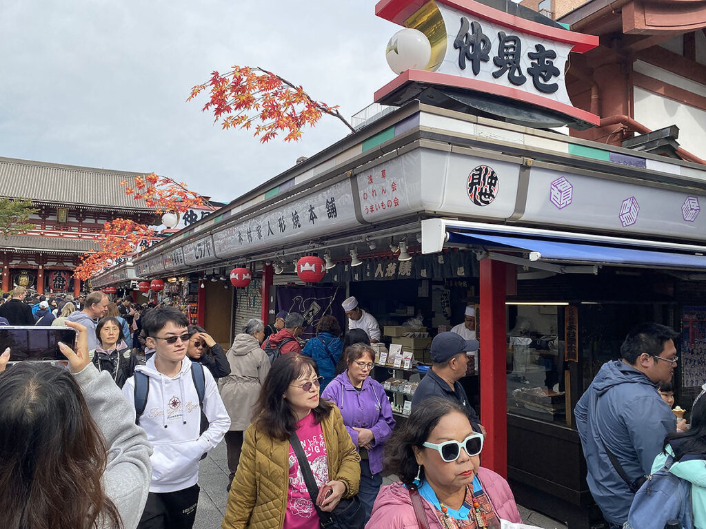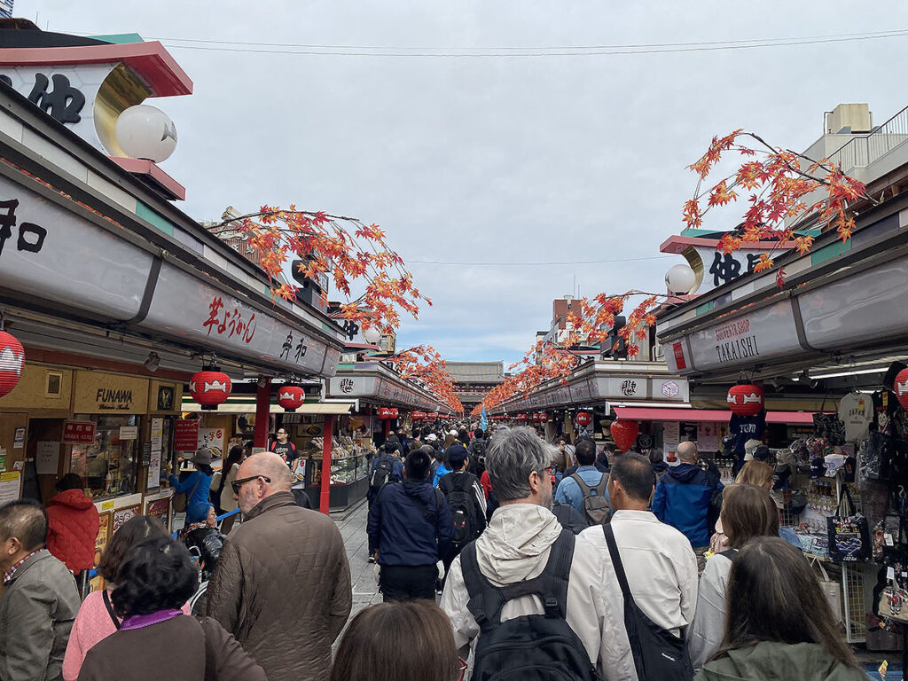 前回の続きで、浅草の浅草寺に来ています。仲見世通りを通って本殿へ向かっていますが、とにかく人が多い!そして9割が外国人、まさにオーバーツーリズムを感じます。