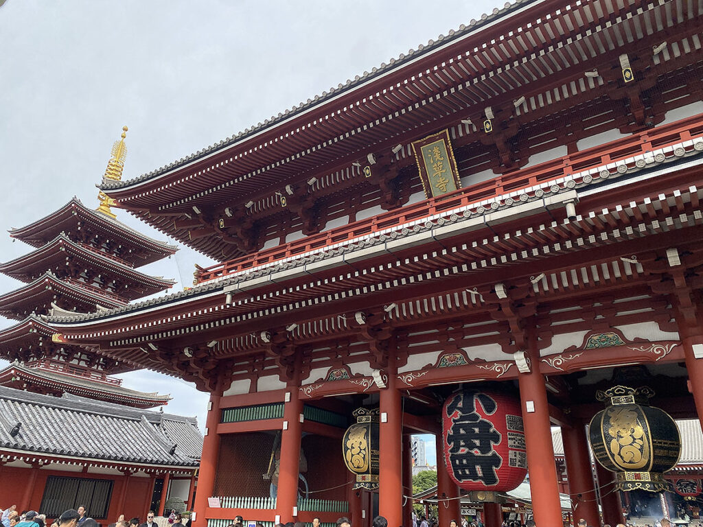 この宝蔵門と五重塔が収まる場所は、雷門と並んで浅草寺の代表的な風景ですよね。