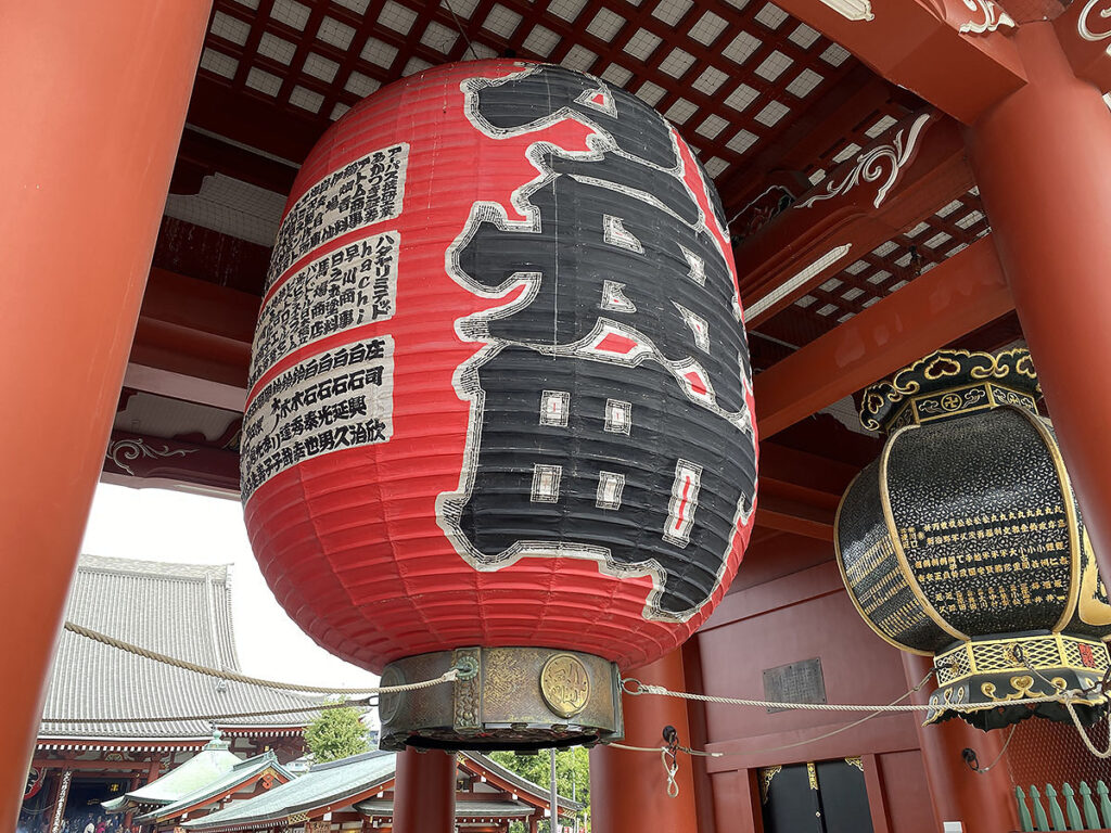 宝蔵門の中心には「小舟町」と書かれた大提灯が架かっています。こちらの提灯の歴史は古く、1659年に日本橋小舟町の信徒から寄進されたのが最初です。