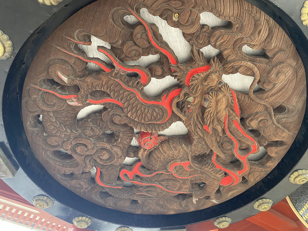 下から覗いてみると、こちらも雷門同様に龍の彫り物が施してありました。