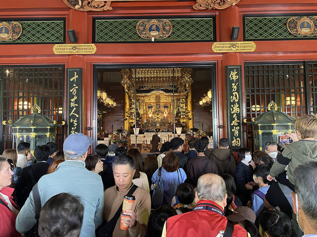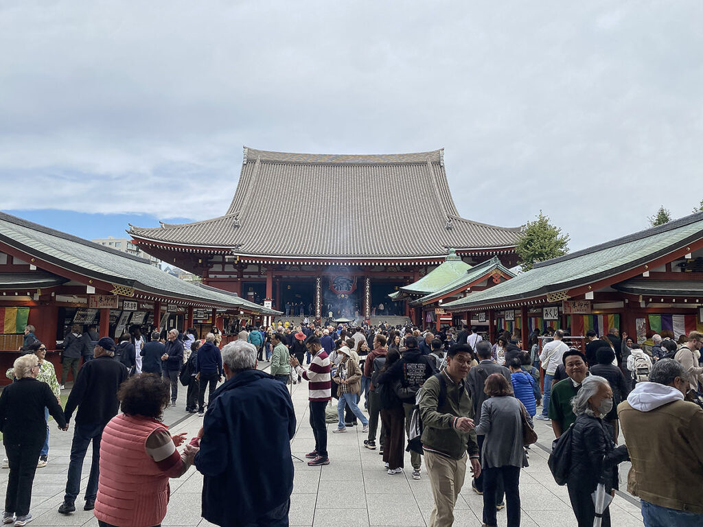 引き続き浅草寺を参拝しています。宝蔵門を抜けるといよいよ本堂がみえてきました。戦後、浅草寺の本堂は1958年に再建され、今日に至る姿となります。