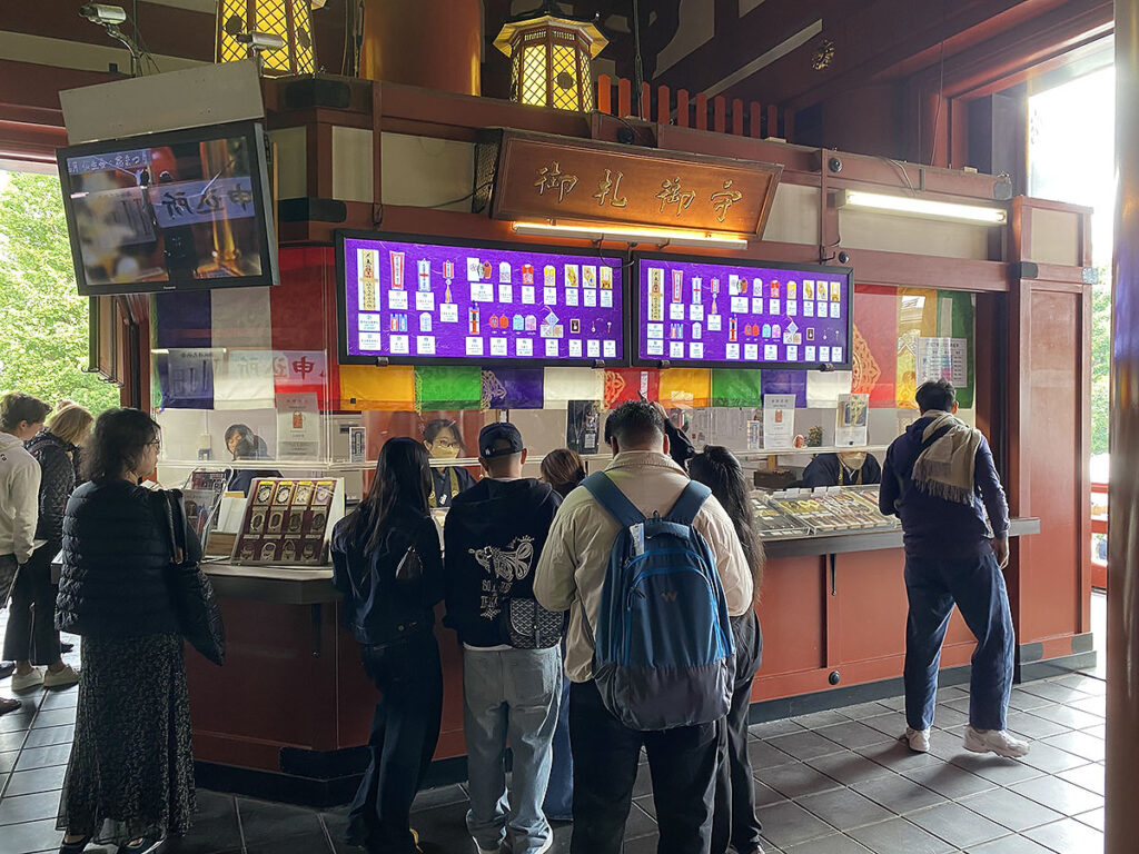 御札や御守の授与所は意外にも近代的な感じでした、中の人は当然英語が話せるんでしょうね。みたところお客さんの8割以上が外国人ですから。