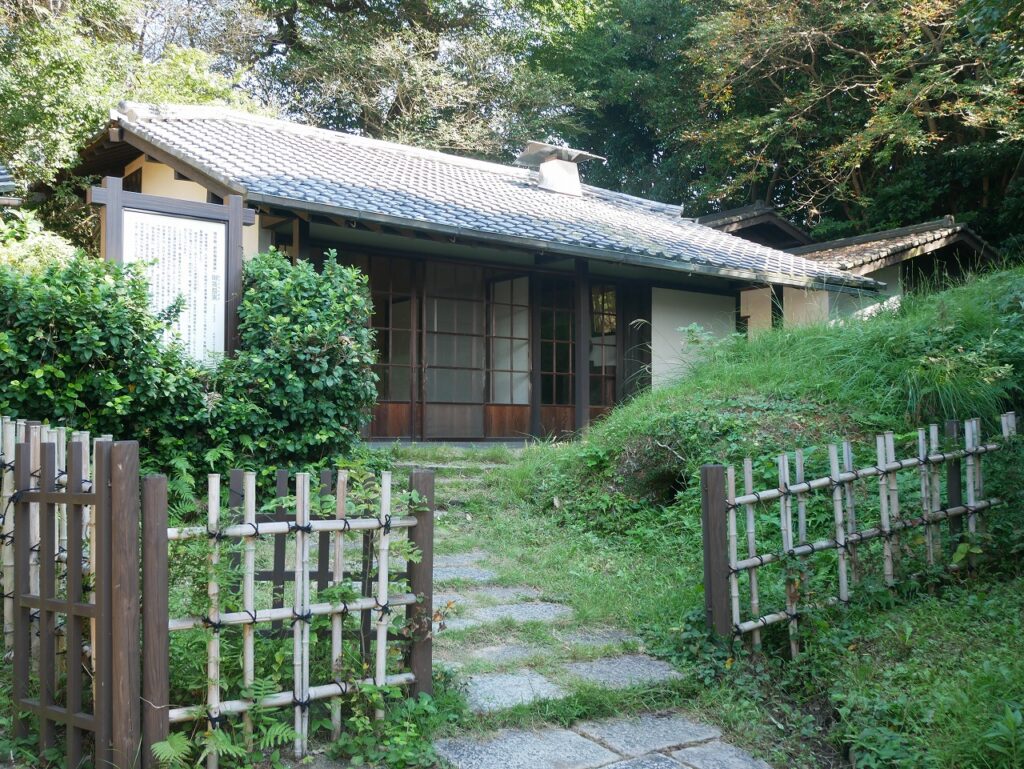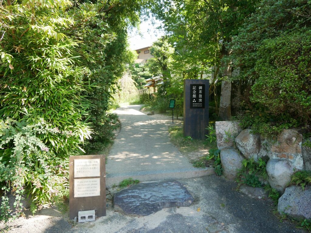 陶房のとなりにある 御茶盌窯記念館。藩窯として茶盌を焼いた窯の歴史を伝える小さな資料館で、ここをかすめるようにして窯跡へ進みます(館内は撮影禁止)。