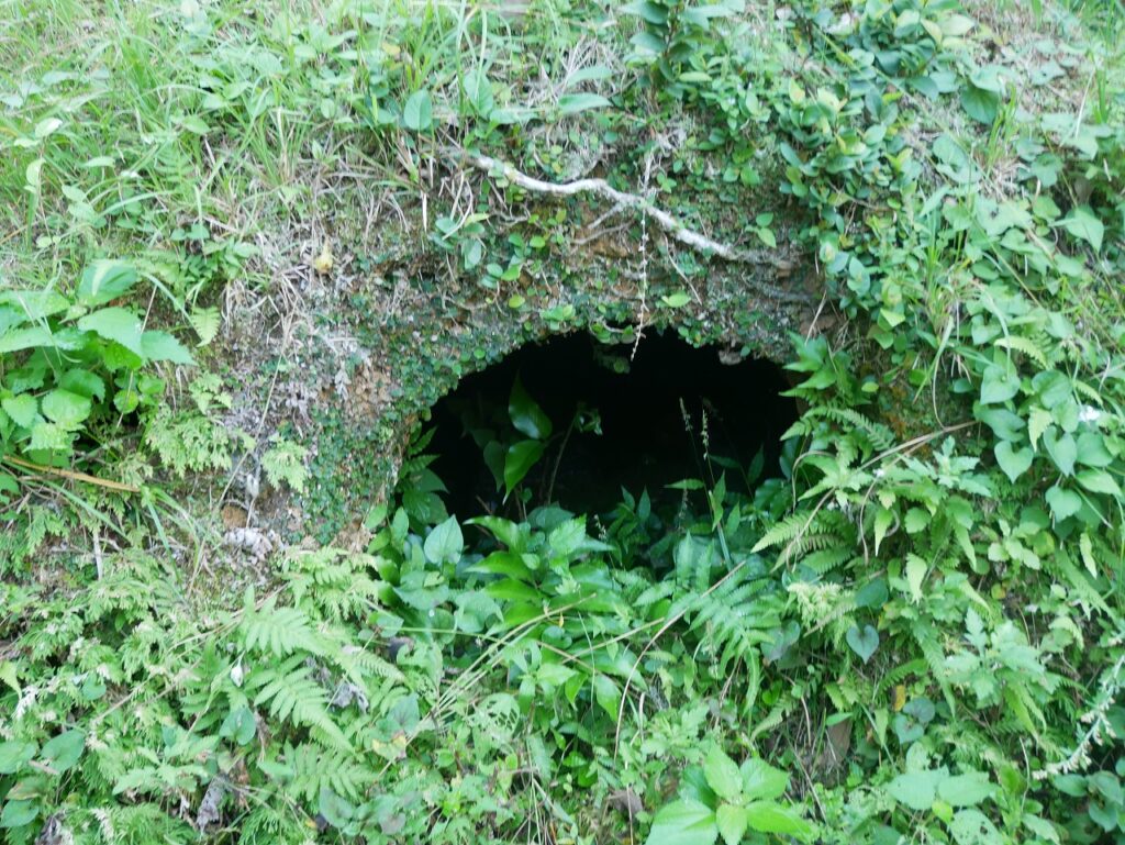 窯跡の前側には、今もはっきりと分かる小さな穴がひとつ。これは 窯の焚き口(たきぐち)跡と思われます。