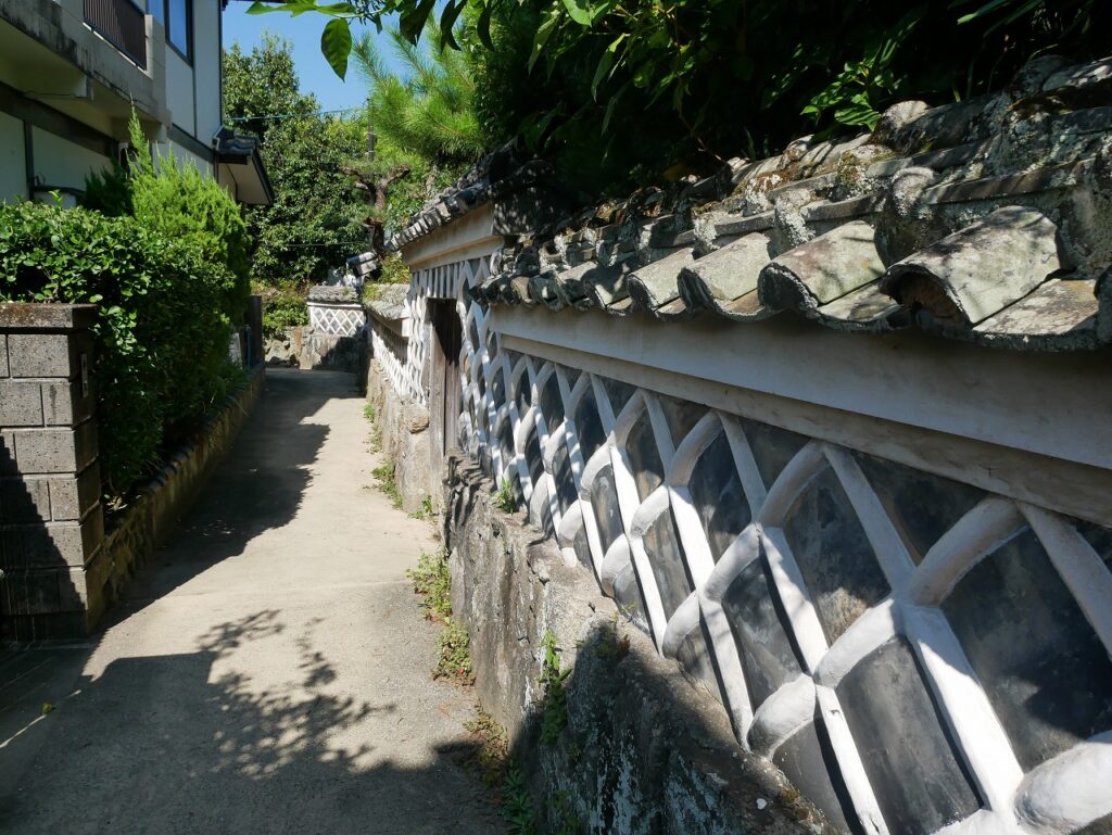 唐津市街地の静かな住宅地。白壁の長い塀に包まれた 中里太郎右衛門陶房の前に車を停め、そのすぐ脇の小道へと足を向けます。