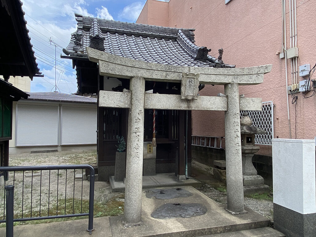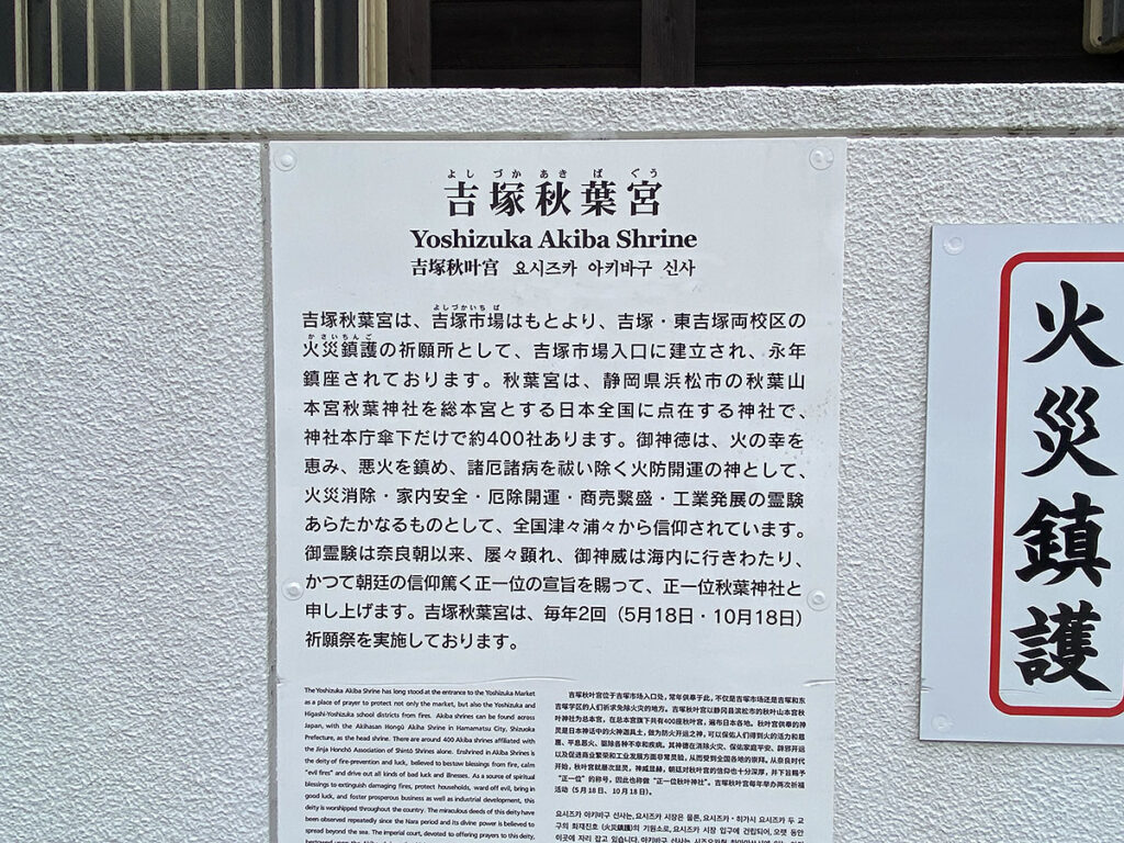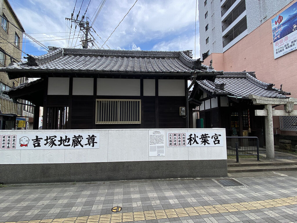 吉塚地蔵堂のすぐ隣に鎮座しているのが「秋葉宮(あきばぐう)」 です。鳥居の扁額には「秋葉宮」と記され、ここには 火防(ひぶせ)・火伏せの神 として知られる祭神が祀られています。