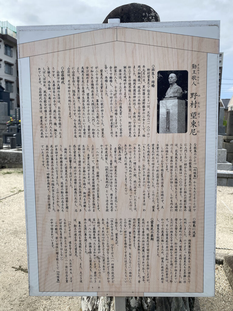 このお寺の見所の一つが、幕末の女流歌人・勤王家として知られる野村望東尼(のむら ぼうとうに)の墓です。