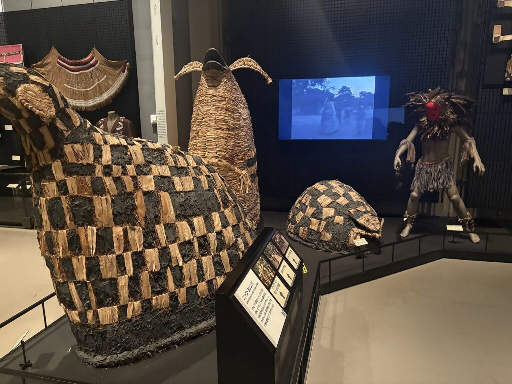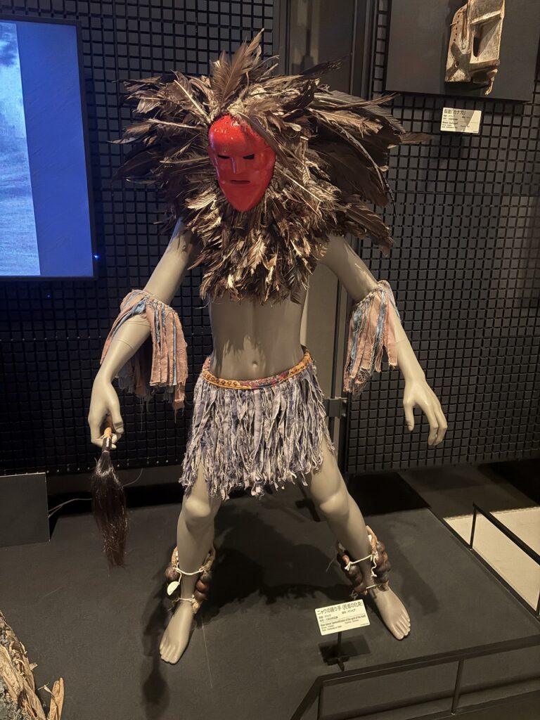 いきなり強烈な民族衣装と仮面が現れます。説明文を読む前に、まず見た目のインパクトでやられました。