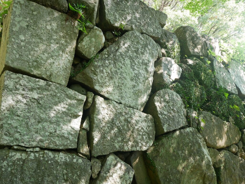 一方で、明らかに積み方が整った、きれいな石垣も現れる。同じ城内でも、場所ごとに表情が違う。