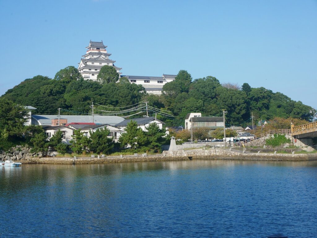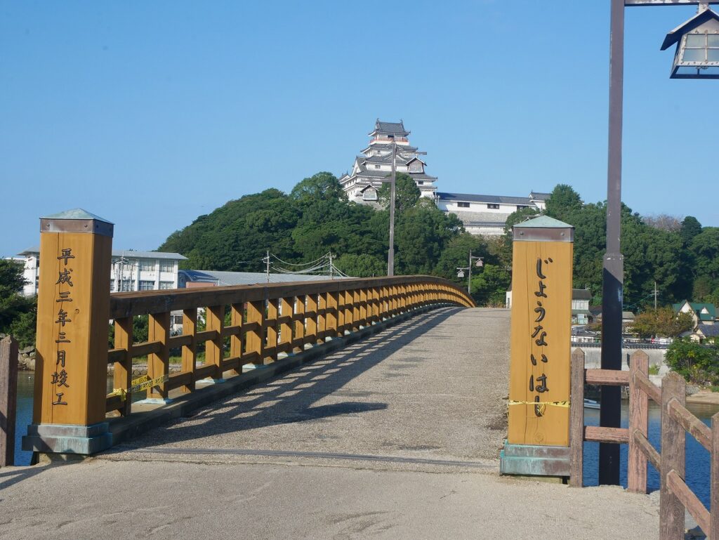 中に入っていると、城は見えません。当たり前ですが。城を出て、川を渡って、なんとなく振り返ったら——いました。ちゃんと。丘の上で、「はい、これが唐津城ですけど?」みたいな顔をして。どうやらこの城、遠くから見るのが正解だったようです。先に言ってほしかった。