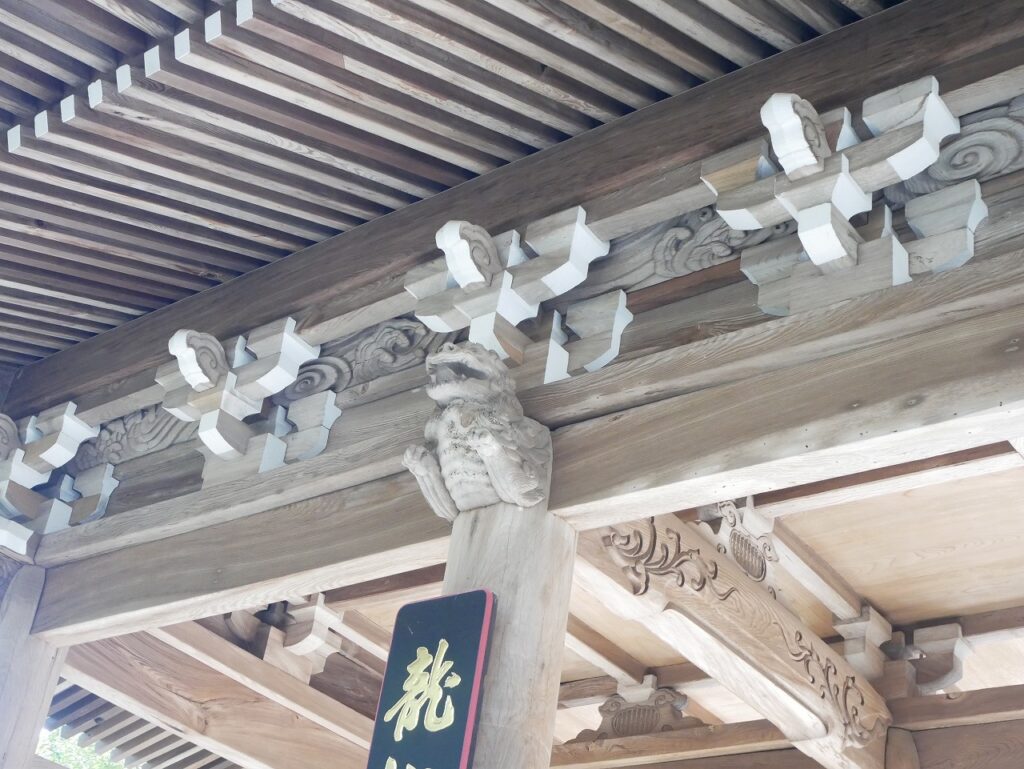 まず目に入るのが山門である。重厚というより、どこか端正な印象の門だ。軒の造りを見上げてみると、細かな木組みが見事に組み合わされている。古い寺院の建築を見ると、ついこういうところを覗き込んでしまう。