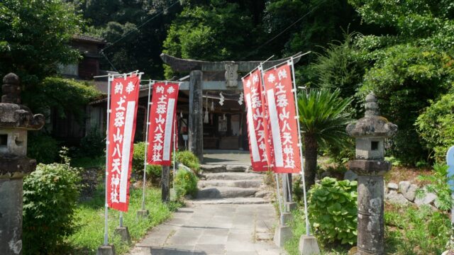 山の入口に、ちょっといい神社 神埼の山のふもとに古い石の鳥居が見えてきます。 「八天神社」と彫られた...